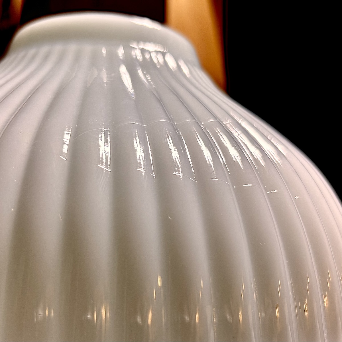 Davis-Lynchのガラスシェードには、小さな泡や細い線が見られることがありますが、これは製造工程の手作業や、昔から変わらない金型を使っていることから生まれる自然な特徴です。